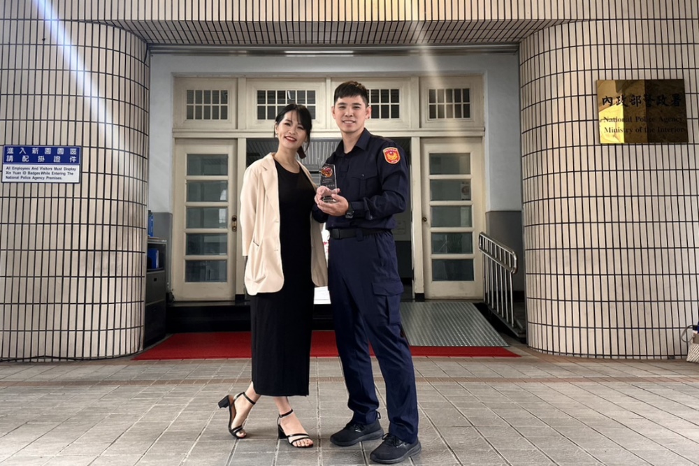 內政部警政署於昨(27)日辦理112年度4至6月好人好事楷模表揚,發掘各類好人好事及特殊為民服務優良事蹟。所長江博凱於今年6月14日獲報有女子神色恍惚坐於南寮漁港岸邊,到場發現該女子已在海中,立即將女子搶救上岸,江員即刻救援行為,獲頒警政署好人好事楷模。所長也偕同家人上台接受表揚,分享喜悅與榮耀。